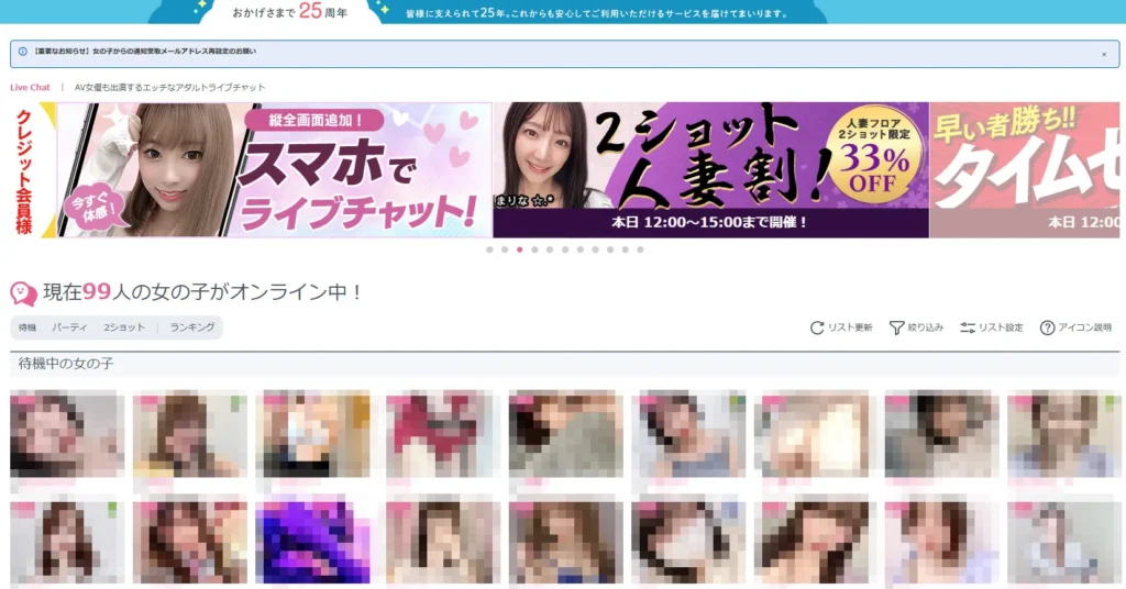 ライブチャットとは、インターネットを通じてユーザーとチャットレディ(配信者)がリアルタイムでコミュニケーションを行うライブ配信サービスです。